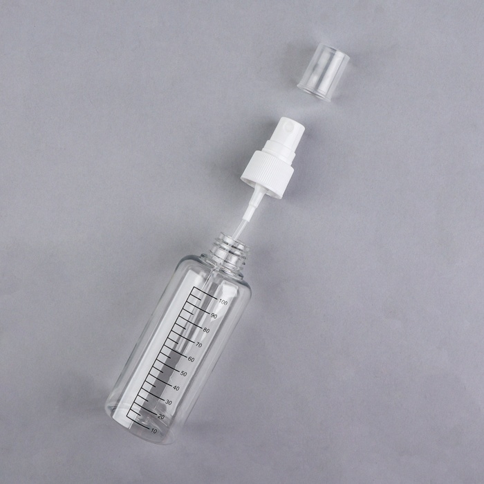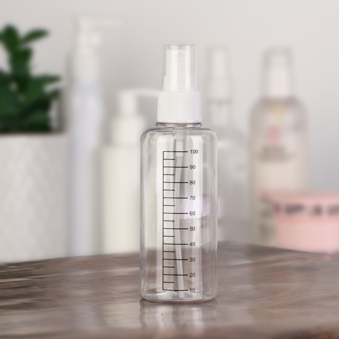 Бутылочка для хранения, с распылителем, со шкалой деления, 100 мл, цвет белый/прозрачный