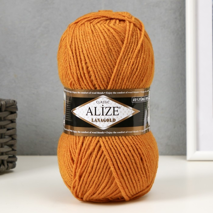 Пряжа "Lanagold" 51% акрил, 49% шерсть 240м/100гр (645 горчичный)