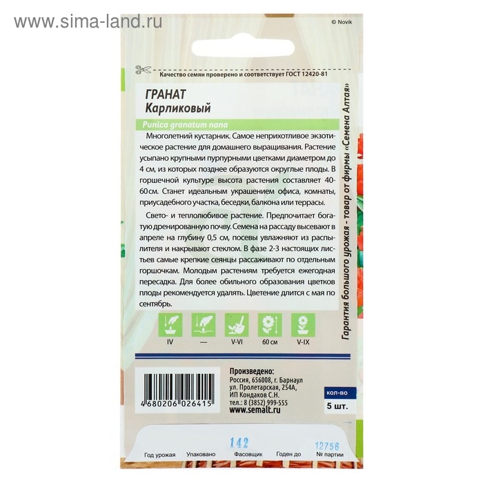 Семена комнатных цветов Гранат Карликовый, Мн, ц/п, 5 шт.