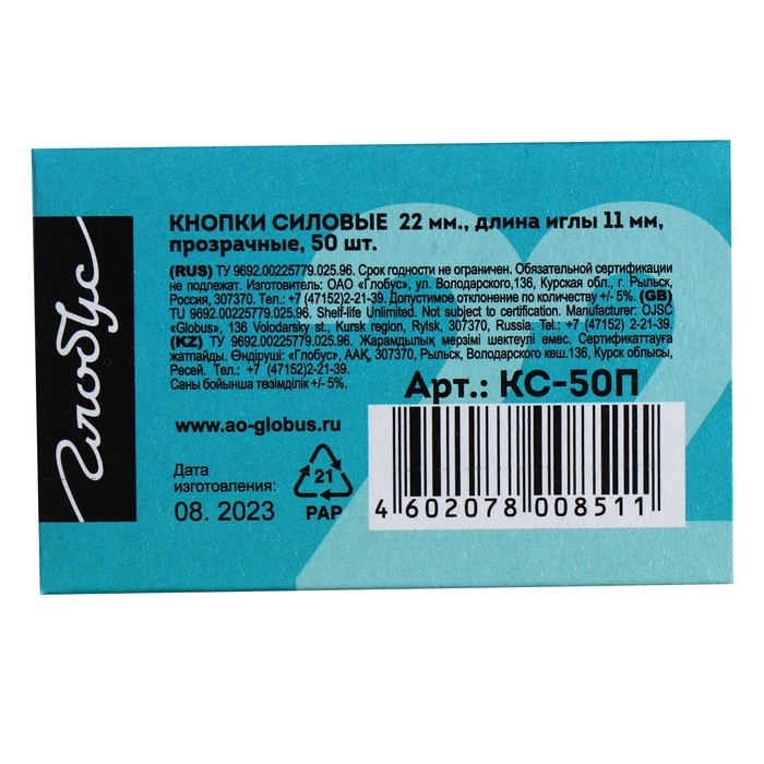 Кнопки силовые GLOBUS, 50 шт., прозрачные