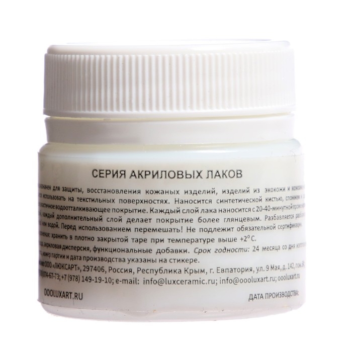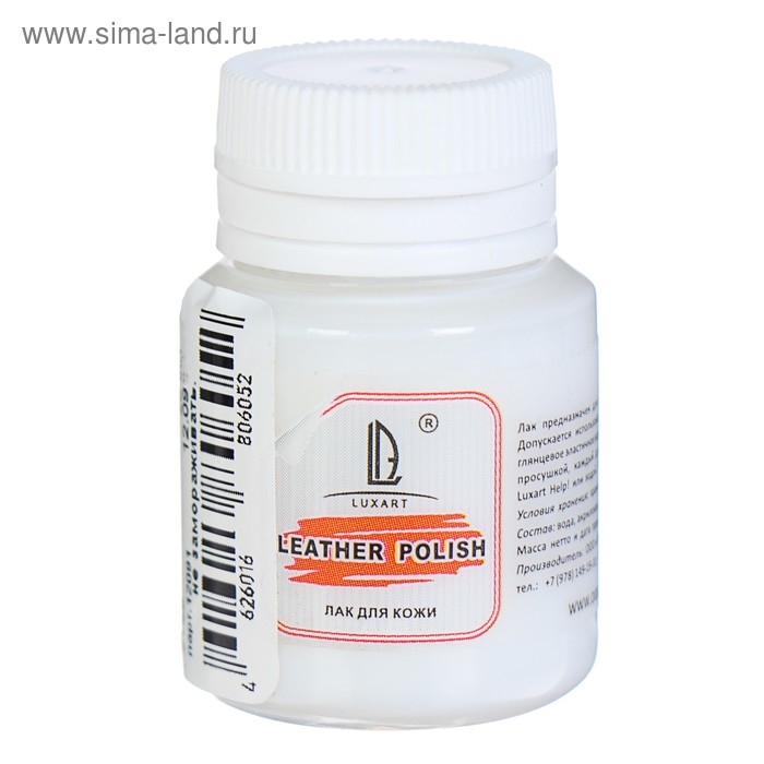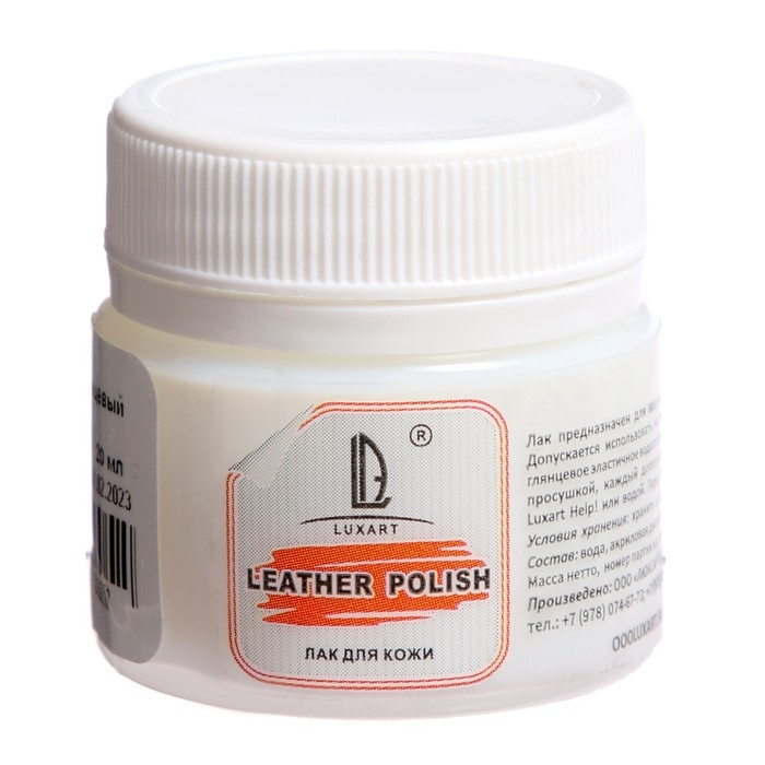 Лак для кожи акриловый глянцевый 20мл, на водной основе, НЕ ЛИПКИЙ, LUXART LuxPolish