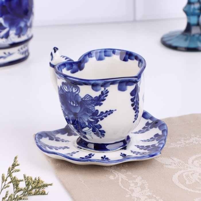 Чайная пара гжель «Кофейная», бело-синий,керамика,