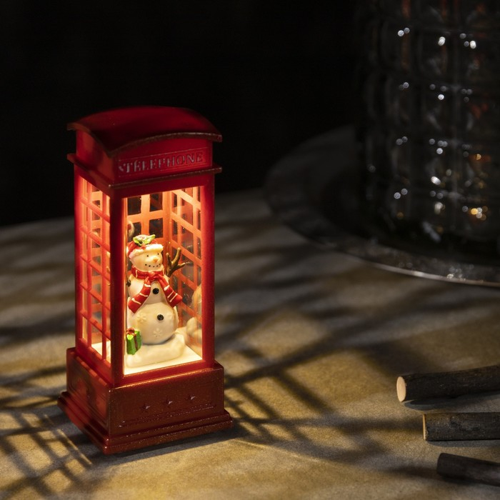 Светодиодная фигура «Снеговик в телефонной будке» 5.3 × 12 × 5.3 см, пластик, батарейки AG13х3 (в комплекте), свечение тёплое белое