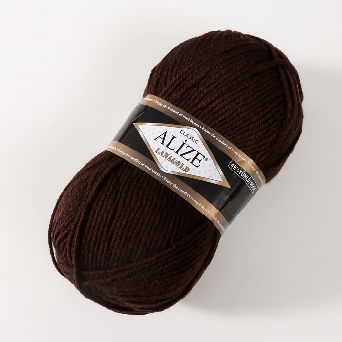 Пряжа "Lanagold" 51% акрил, 49% шерсть 240м/100гр (26 коричневый)