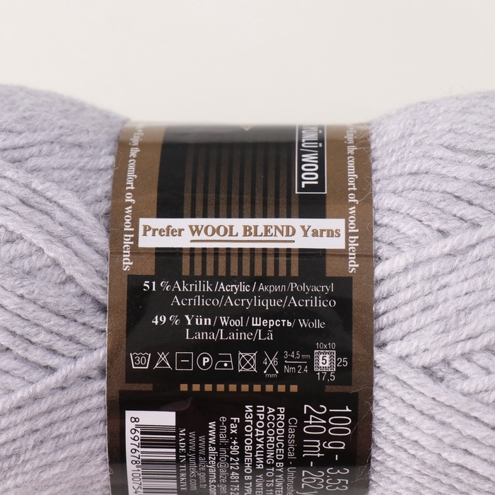 Пряжа "Lanagold" 51% акрил, 49% шерсть 240м/100гр (684 пепел. мел.)