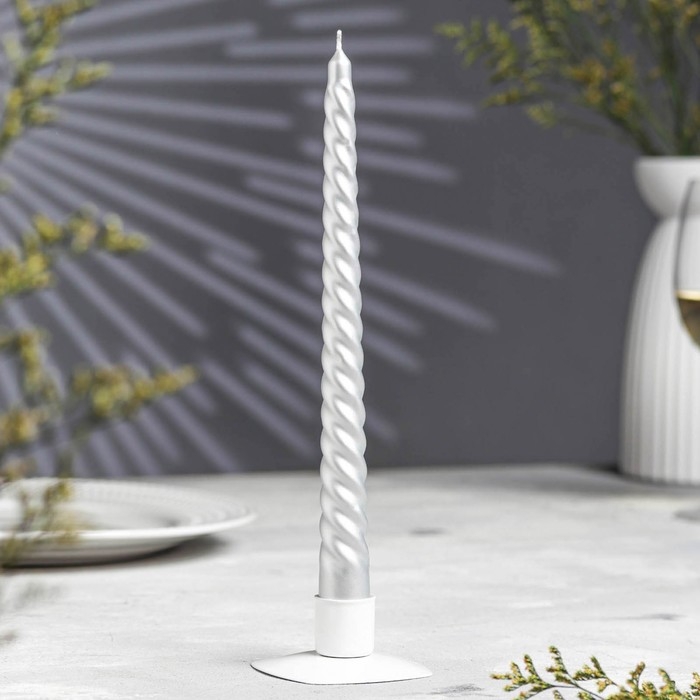 Свеча витая, 2,2х 25 см, лакированная в термопленке, серебренный металлик