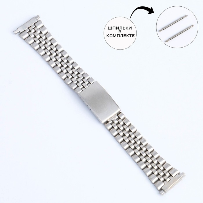 Ремешок для часов "Соломон", 22 мм, металл, l-16.5 см, серебряный