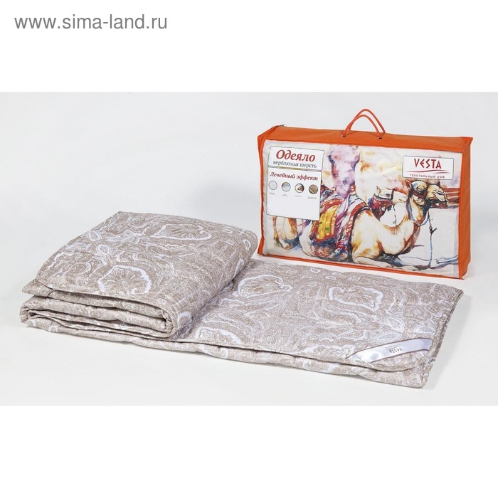 Одеяло зимнее 220х205 см, шерсть верблюда, ткань тик, п/э 100%