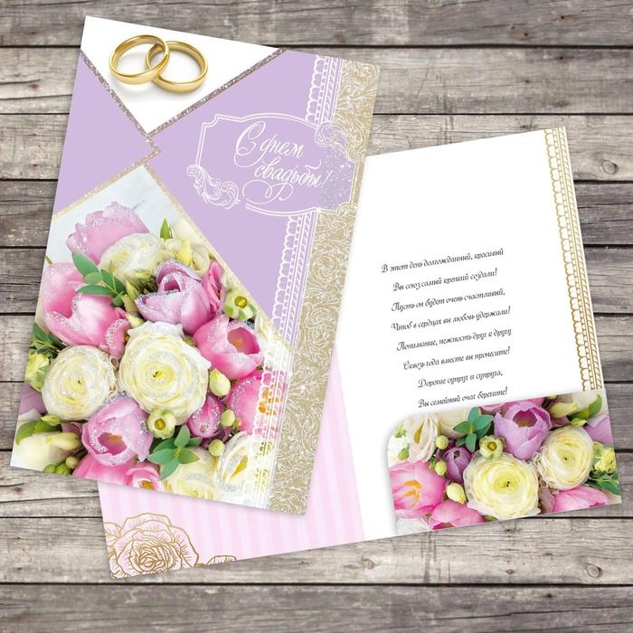 Открытка с карманом для денег «С днём свадьбы», 19 х 29 см