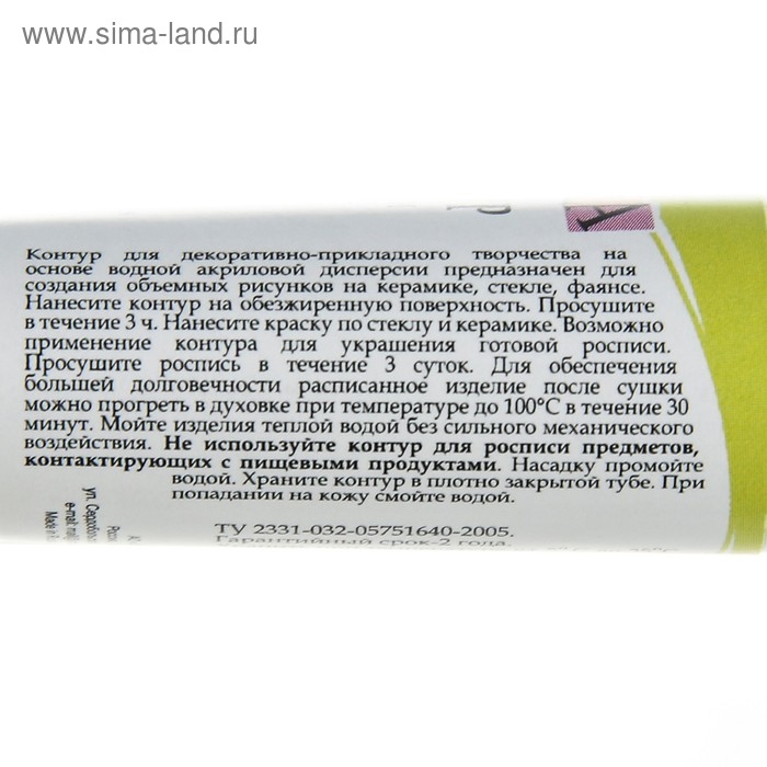 Используется для создания объемных рисунков на различных поверхностях: керамике, стекле, фаянсе. Отлично подходят для декорирования стеклянных и керамических поверхностей красками, имитируя витражи.