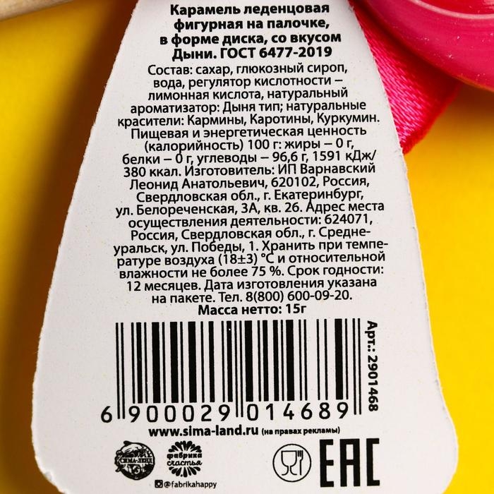 Леденец на палочке «Доза позитива», вкус: дыня, 15 г.