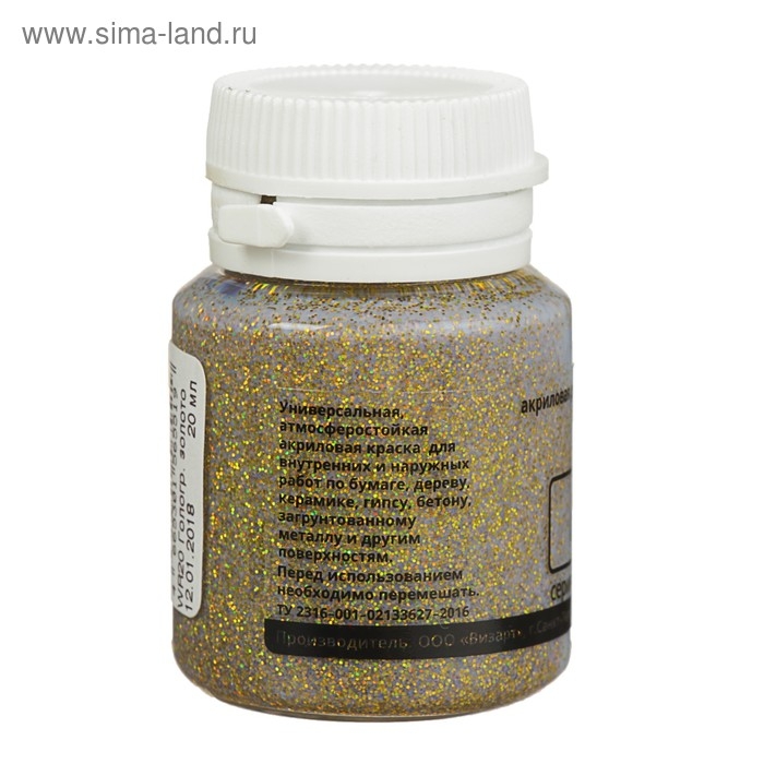 Краска акриловая перламутровая 20 мл, WizzArt Pearl, голографическое золото, морозостойкая