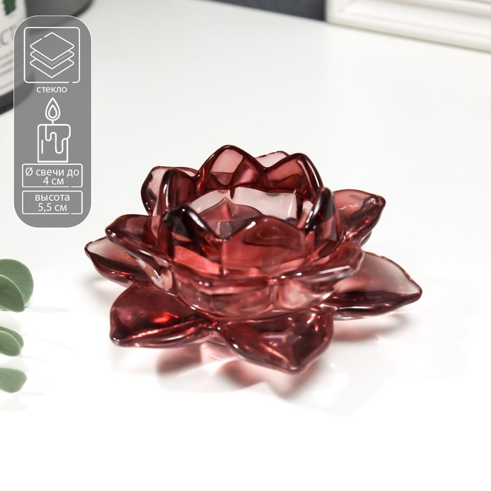 Подсвечник стекло на 1 свечу "Лотос" фиолетовый 5,5х12х12 см