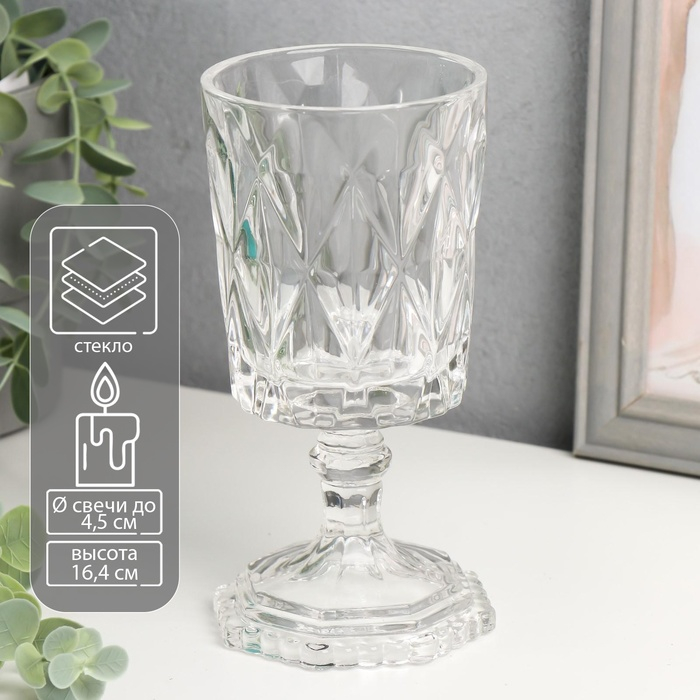 Подсвечник стекло на 1 свечу "Грани" бокал на ножке прозрачный 16,4х8х8,5 см