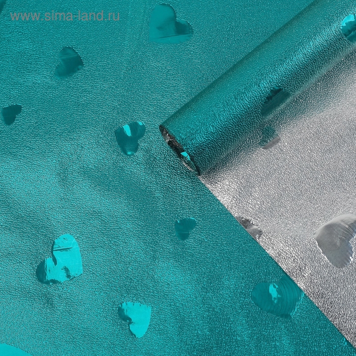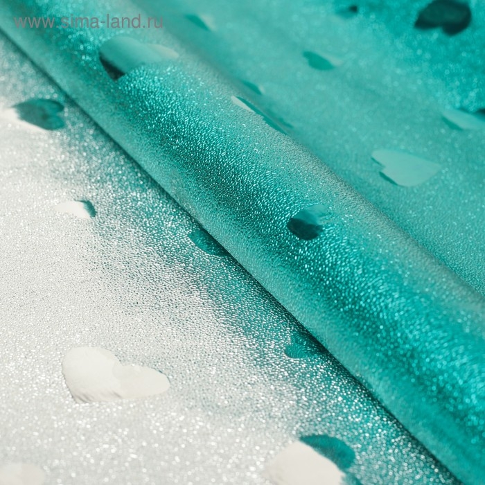 Плёнка металлизированная "Сердца", бирюза, 0,7 х 2 м