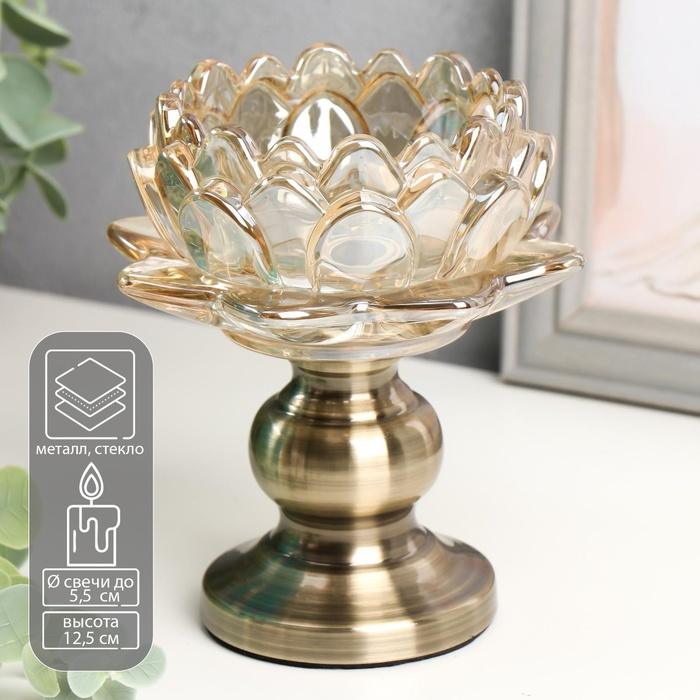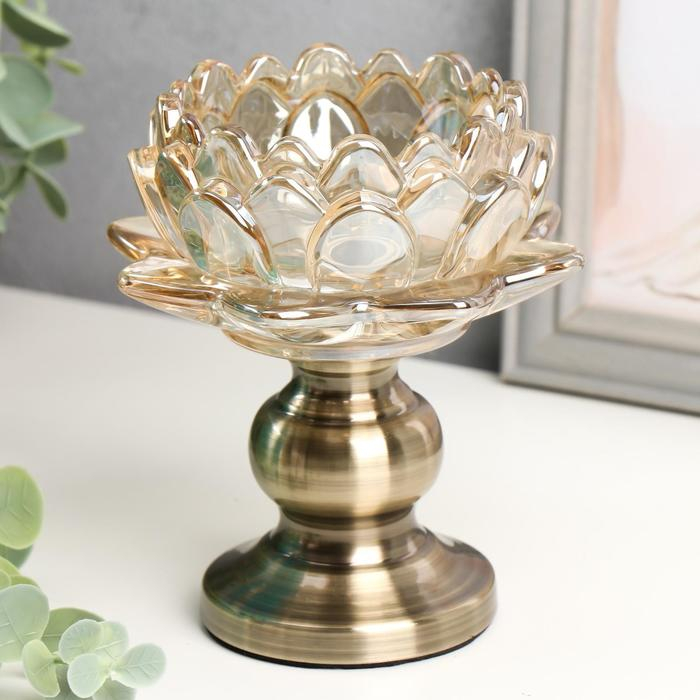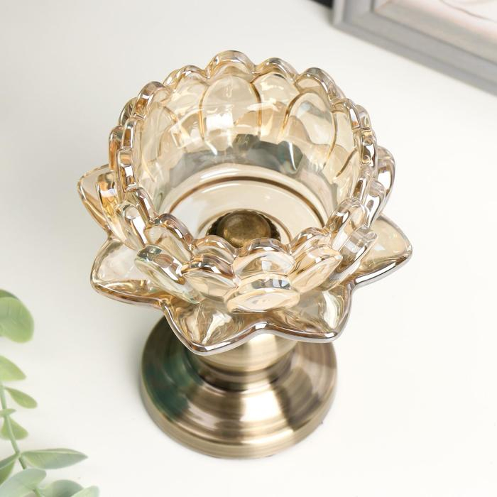 Подсвечник стекло на 1 свечу "Лотос" на ножке карамель 12,5х12х12 см