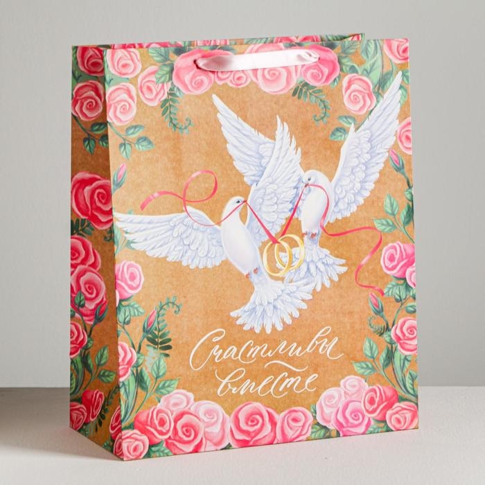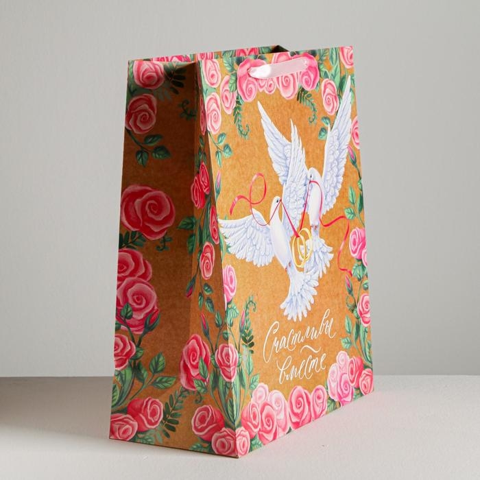 Пакет подарочный ламинированный, упаковка, «Счастливы вместе», XL 49 х 40 х 19 см