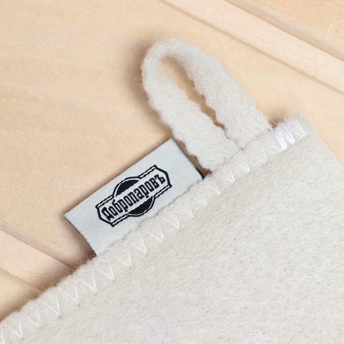 Рукавица для бани, белая с черной вышивкой "ДОБРОПАРОВЪ"