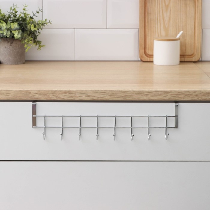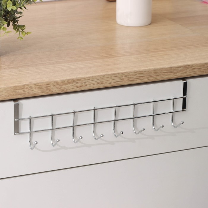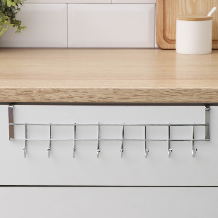 Вешалка на дверь на 8 крючков Доляна «Блеск», 36×9×2 см, цвет хром
