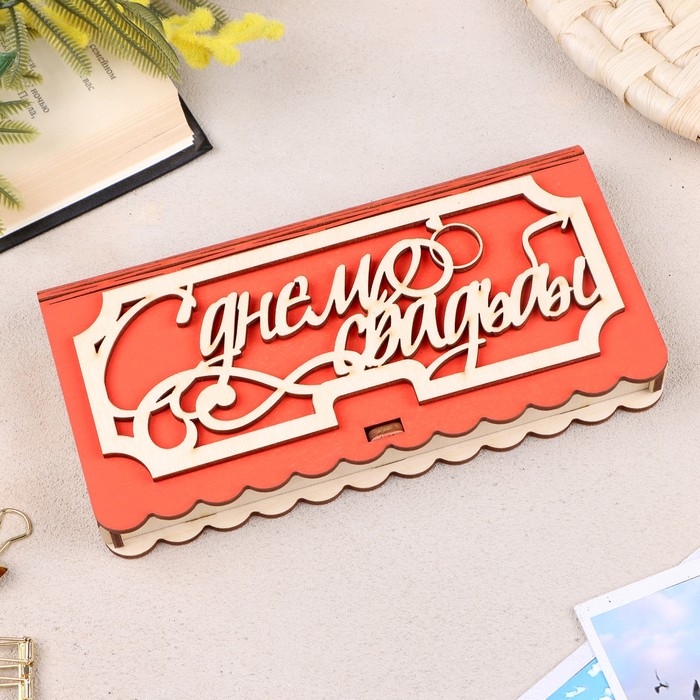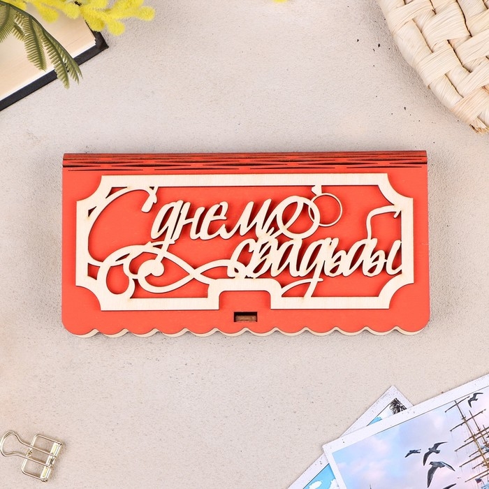 Купюрница «С Днем Свадьбы», 17x9,5x2,5 см, красная