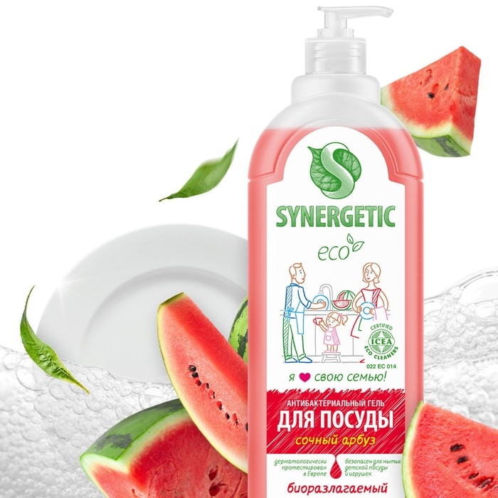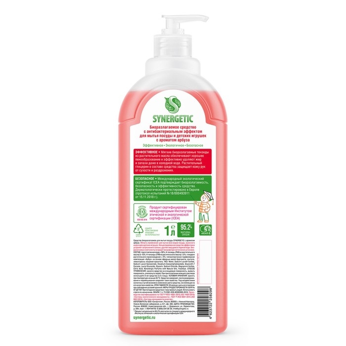 Средство для мытья посуды Synergetic "Арбуз", с антибактериальным эффектом, 1 л