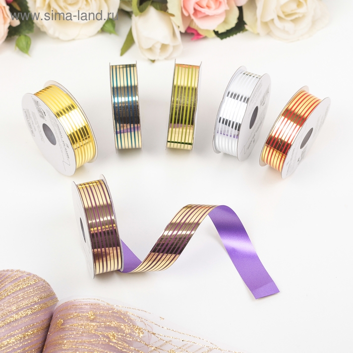 Лента упаковочная с золотой полосой, ассорти, набор 6 шт., 0,5 см х 10 м