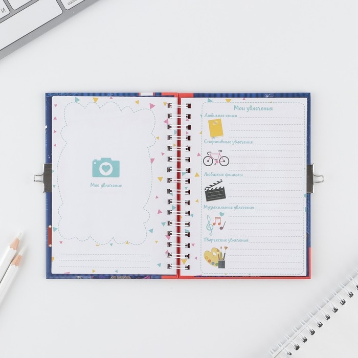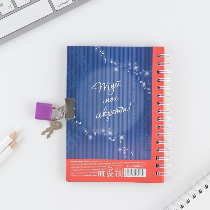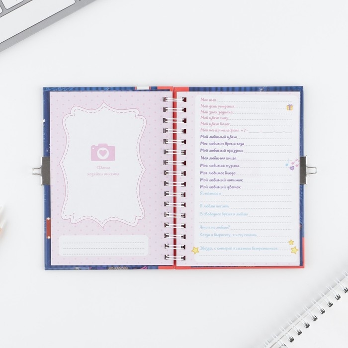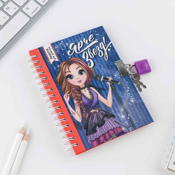 Анкета на замочке, в твердой обложке А6, 40 листов «Ярче звезд»