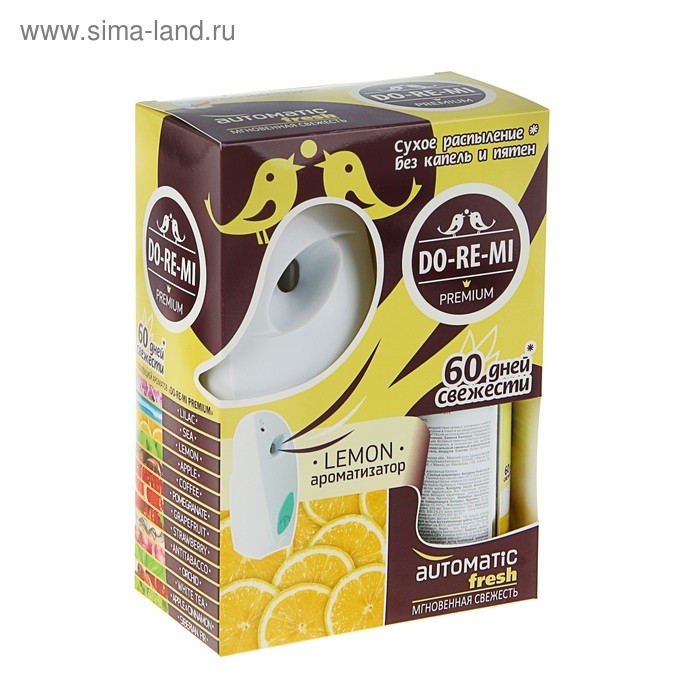 Автоматический диспенсер + 2 батарейки. В комплект "До-ре-ми" премиум входит диспенсер и автоматический освежитель воздуха. Комплект освежителя воздуха До-Ре-Ми прекрасно освежит ваш дом от неприятных запахов. Автоматическое распыление без капель и пятен. Свежесть до 60 дней.