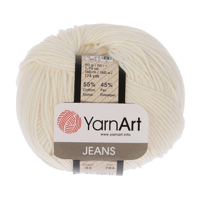 Пряжа "Jeans" 55% хлопок, 45% акрил 160м/50гр (03 молочный)
