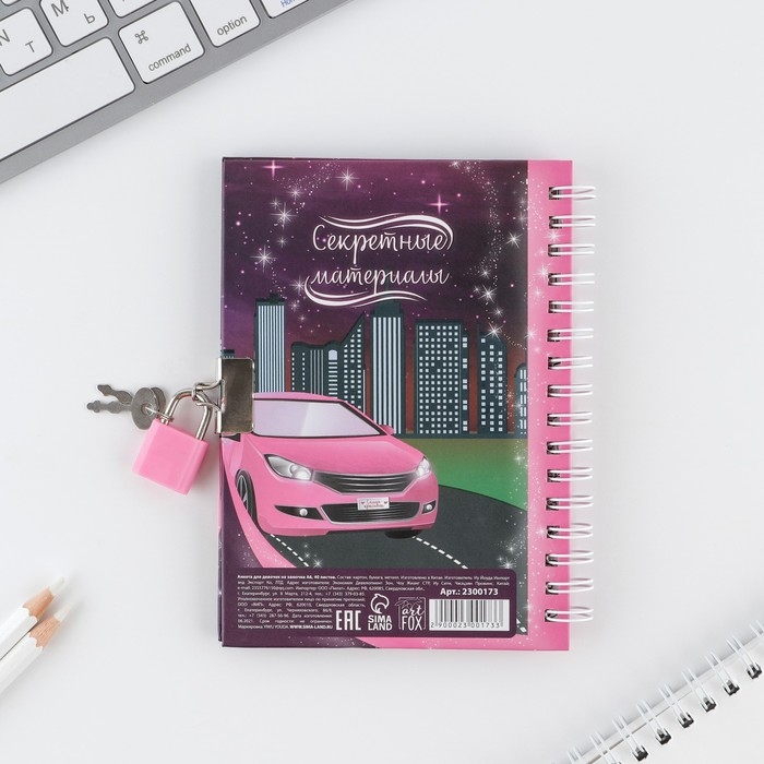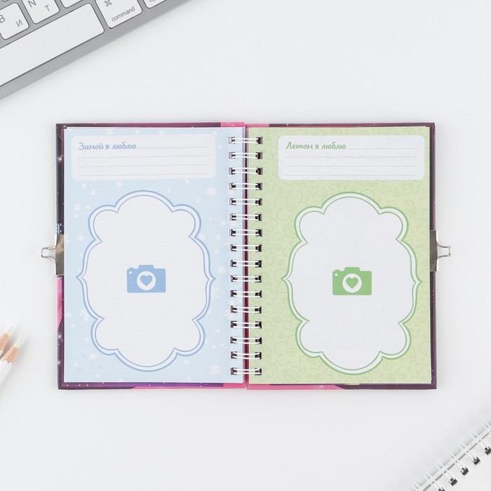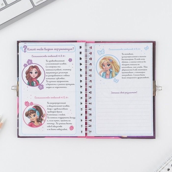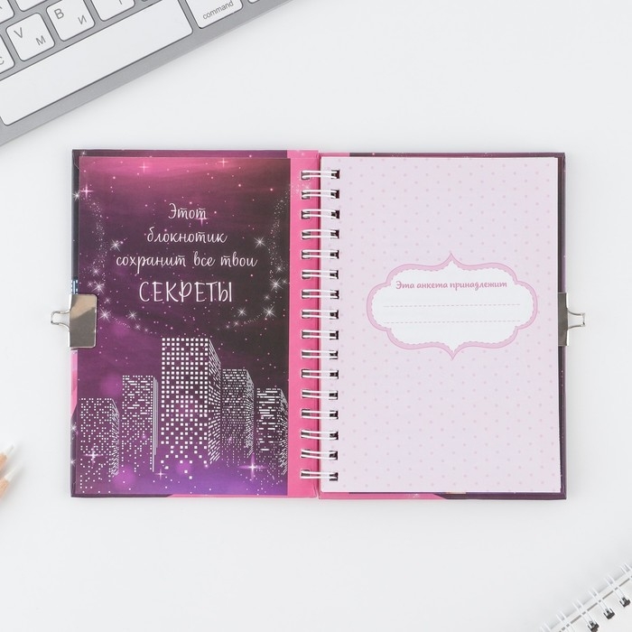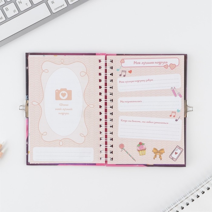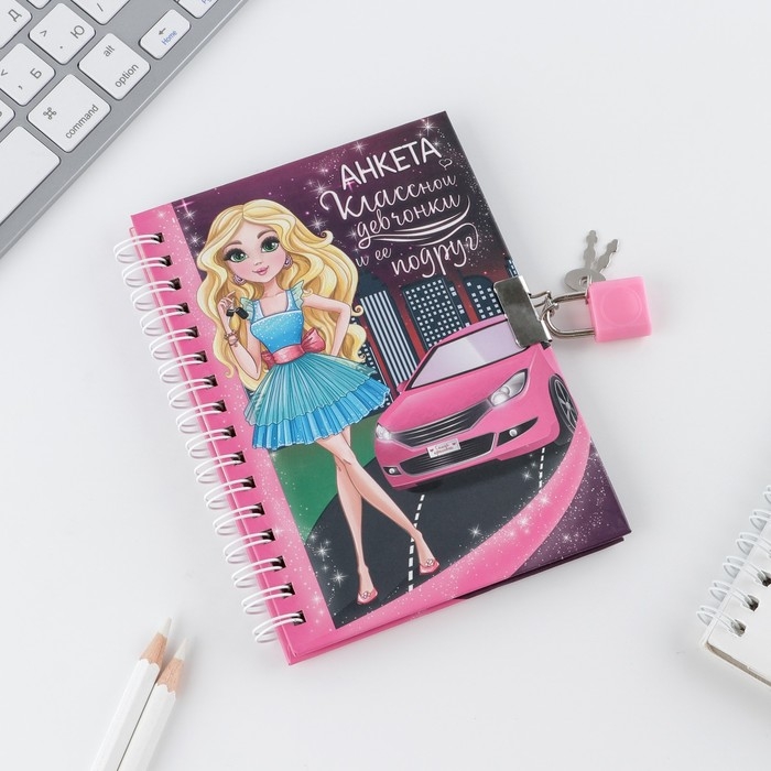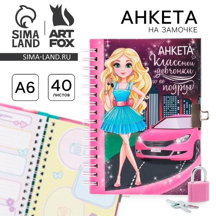Анкета на замочке, в твердой обложке А6, 40 листов «Анкета классной девчонки и ее подруг»