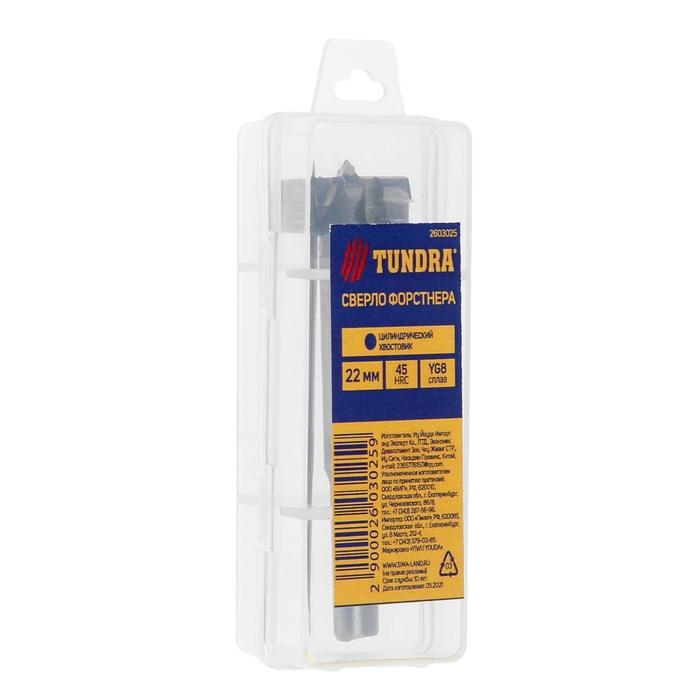 Сверло Форстнера ТУНДРА, твердосплавные пластины, цилиндрический хвостовик, 22 мм