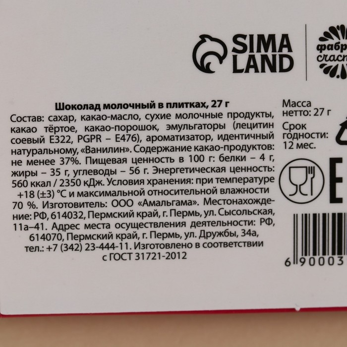 Шоколад молочный «Антигрустин - Противогрустин»: 27 г.