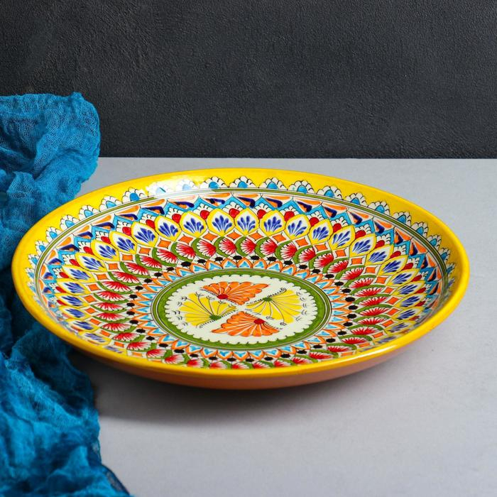 Ляган Риштанская Керамика "Узоры", 32 см, жёлтый