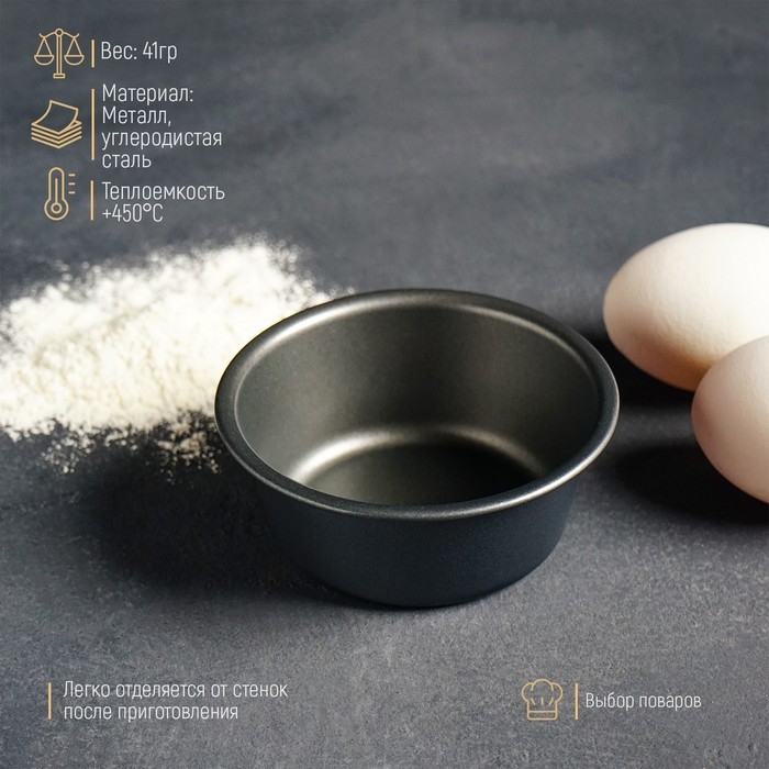Форма для выпечки «Круг. Жаклин», 9×4 см, антипригарное покрытие, цвет чёрный