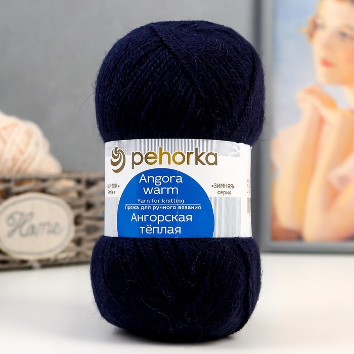 Пряжа "Ангорская тёплая" 40% шерсть, 60% акрил 480м/100гр (571 синий)