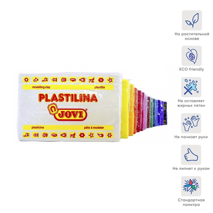 Легендарный пластилин JOVI на растительной основе идеален для начала обучения лепке и для уроков в школе и творческих студиях. Благодаря усовершенствованной формуле с воском пластилин JOVI безопасен, обладает повышенной пластичностью, хорошо лепится, прекрасно держит форму, не деформируется, легко извлекается из формочки, не крошится, не высыхает, цвета прекрасно смешиваются между собой, слепленные фигурки не опадают со временем. Используется для техники "Рисование пластилином" и пластилиновой мультипликации.