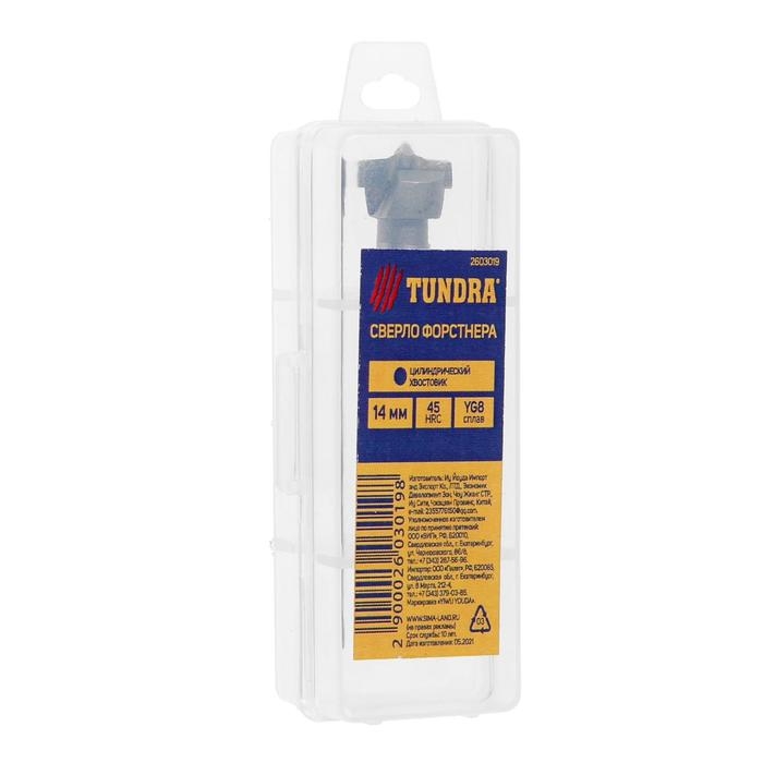 Сверло Форстнера ТУНДРА, твердосплавные пластины, цилиндрический хвостовик, 14 мм