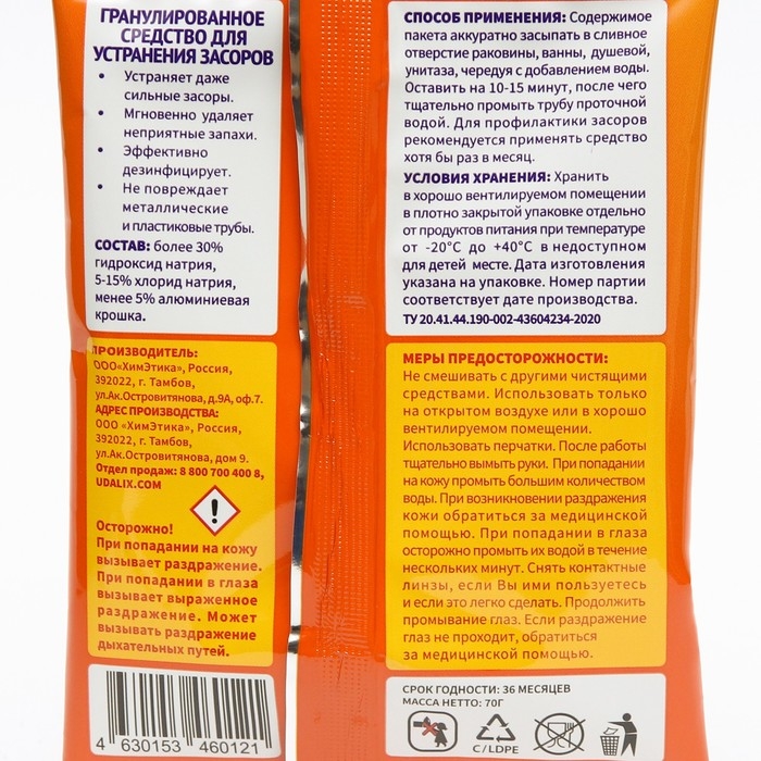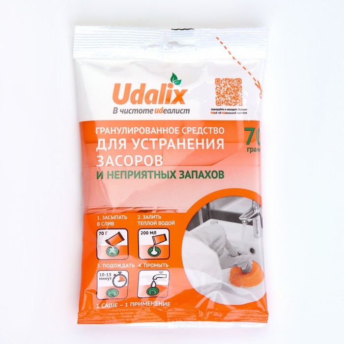 Средство для удаления засоров в трубах Udalix, 70 гр
