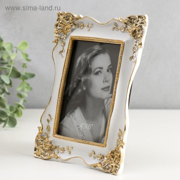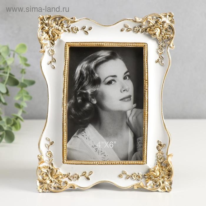 Фоторамка полистоун 10х15 см "Элегия" белая с золотыми уголками 21х16 см