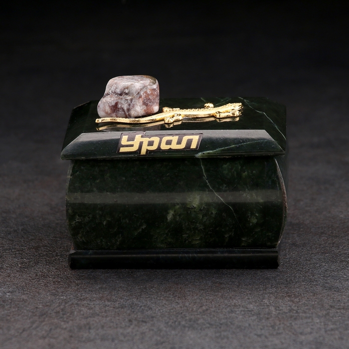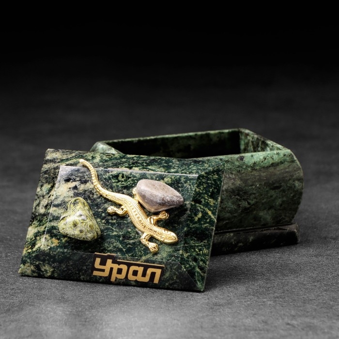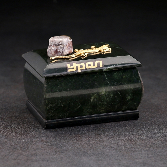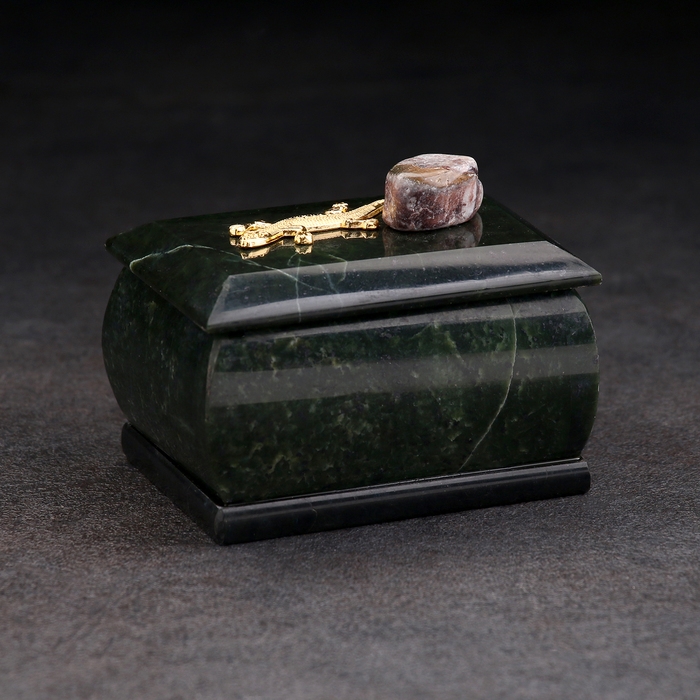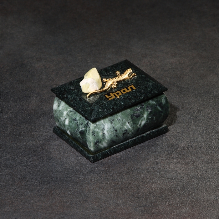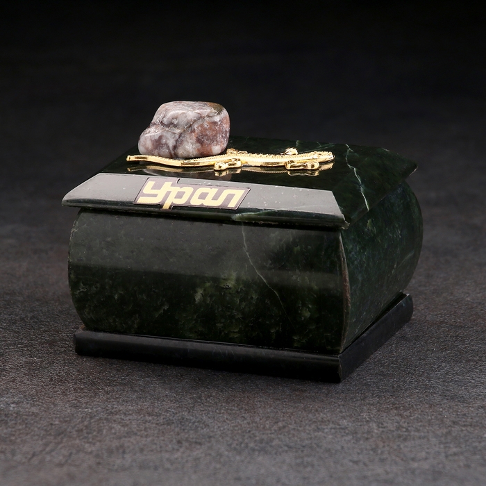 Шкатулка "Урал" прямоугольная, змеевик, с декоративным камнем, 7,5х5,5х5,5 см