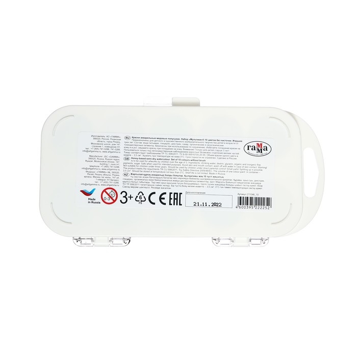 - Удобный пластиковый пенал, крышка плотно фиксируется и служит палитрой для смешивания красок.