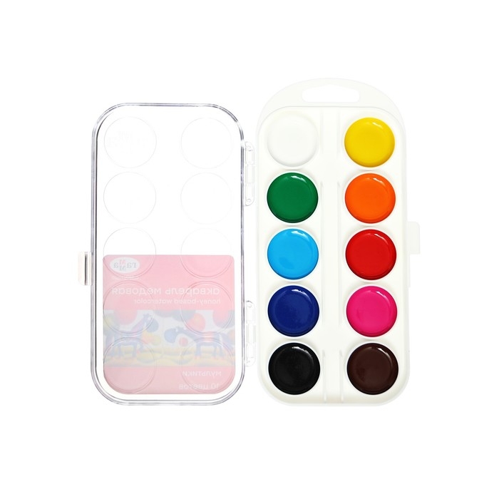 Акварельные краски медовые 12 цветов в пластиковой коробке, без кисти