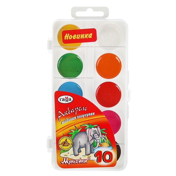 Акварель 10 цветов «Гамма» «Мультики», в пластиковой коробке, без кисти