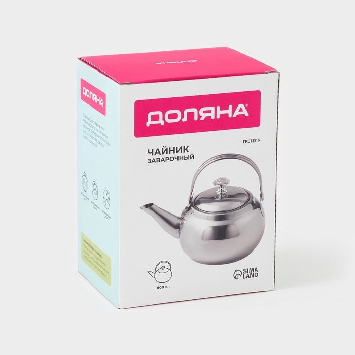 Заварочный чайник Доляна «Гретель», 700 мл, металлическое сито, нержавеющая сталь, хромированный