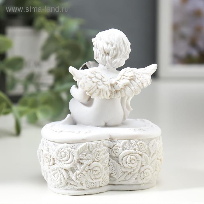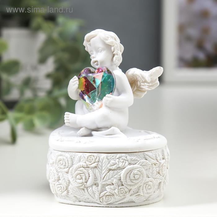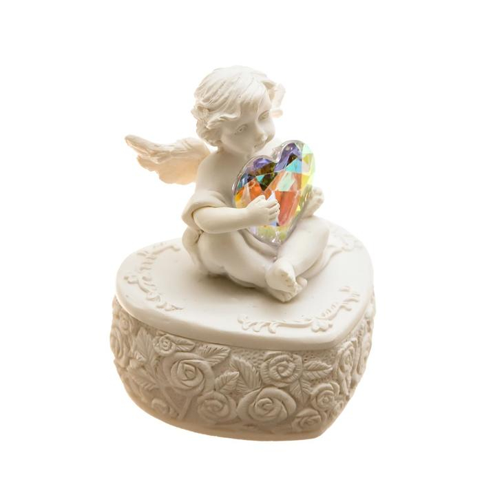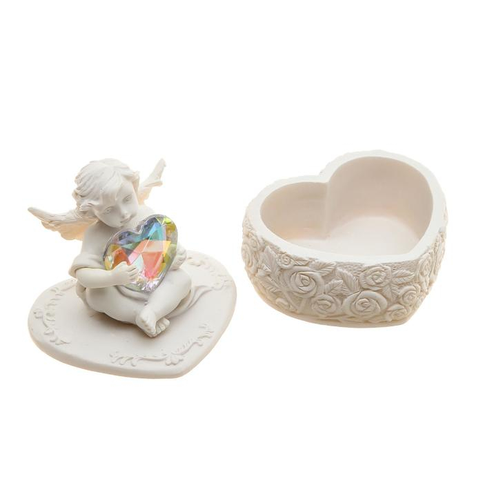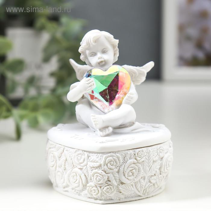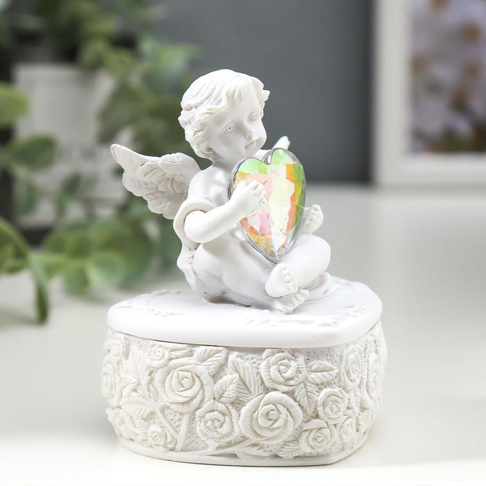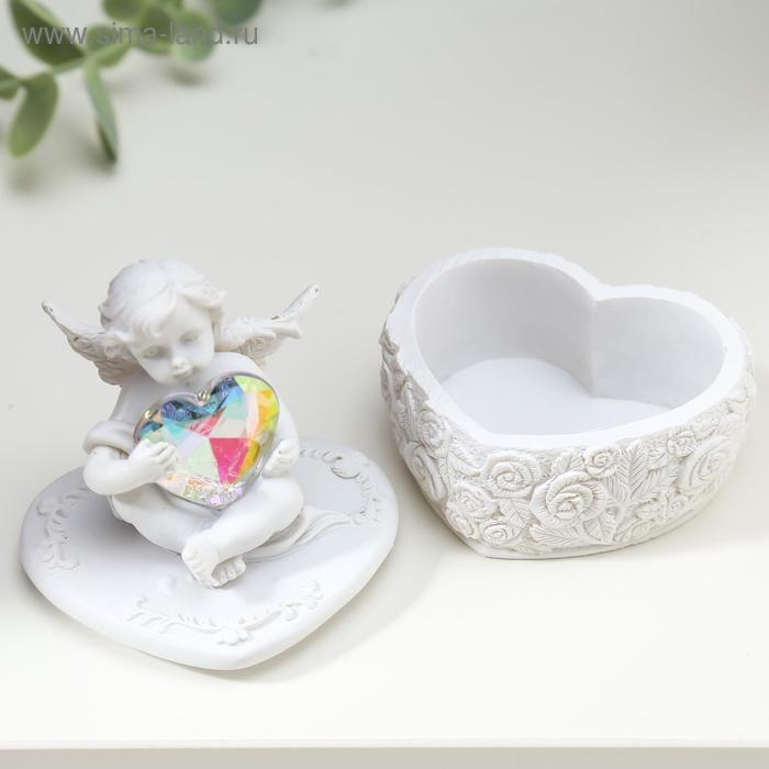 Сувенир полистоун шкатулка "Белоснежный ангел с переливающимся сердцем" 8х6,5х5,4 см
