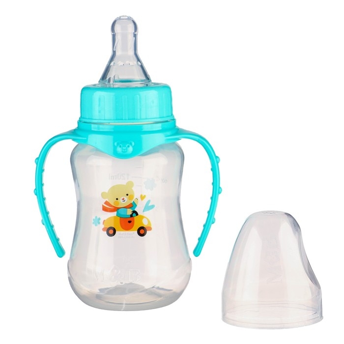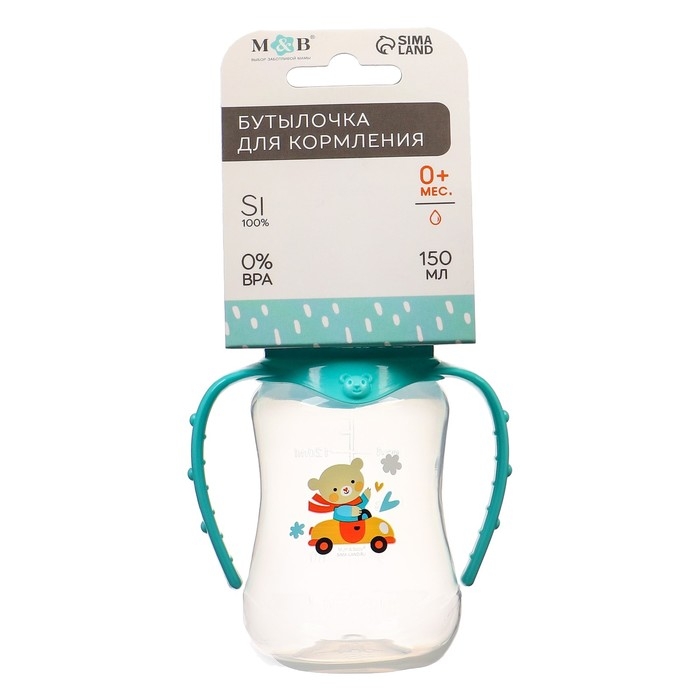 Бутылочка для кормления «Мишутка», классическое горло, приталенная, с ручками, 150 мл., от 0 мес., цвет бирюзовый