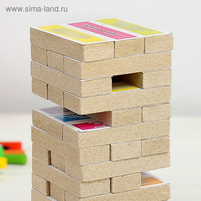 Падающая башня дженга, настольная игра "Фанты", с заданиями, 54 бруска, 18.5 х 6.5 см