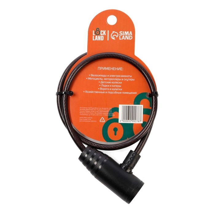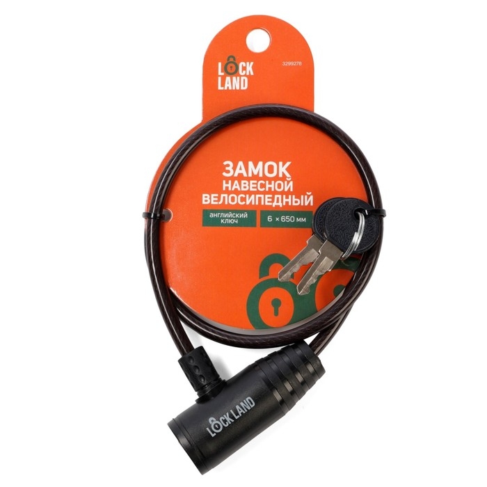 Замок навесной велосипедный LOCKLAND, 6х650 мм, английский ключ с пластиковой ручкой