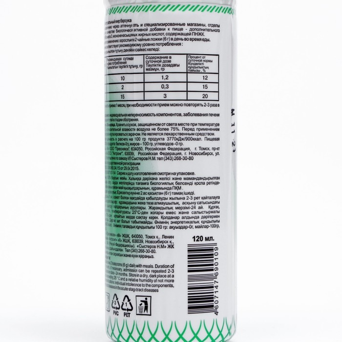 Способ применения: по 1 чайной ложке 2 раза в день во время еды. Запивать тёплой водой, чаем, молоком. Продолжительность приема до 1 месяца.