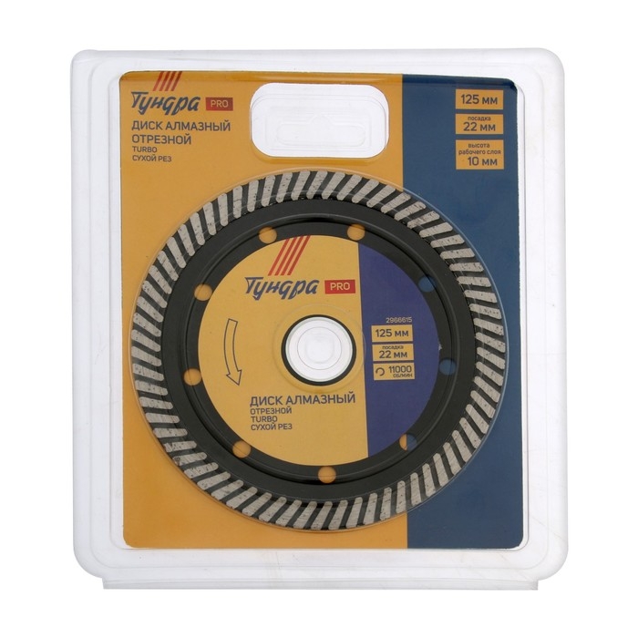 Диск алмазный отрезной ТУНДРА ПРОФИ, повышенный ресурс, TURBO, сухой рез, 125 х 22 мм